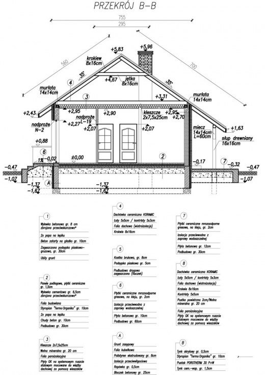 Technologia tradycyjna , ściany zewnętrzne murowane grubości 30 cm, działowe gr. 12 cm. Wszystkie ściany wykonane z pustaków ceramicznych "POROTHERM". Konstrukcja więźby dachowej drewniana, pokrycie dachówka ceramiczna. Istnieje mozliwośc adaptacji obiektu na budynek całoroczny - docieplenie warstwą styropianu gr. 10 cm.