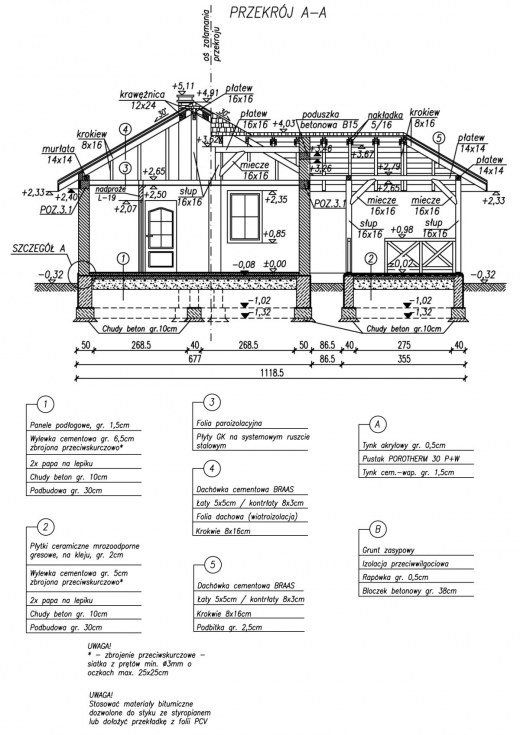 Technologia tradycyjna , ściany zewnętrzne murowane grubości 30 cm, działowe gr. 12 cm. Wszystkie ściany wykonane z pustaków ceramicznych "POROTHERM". Konstrukcja więźby dachowej drewniana, pokrycie dachówka ceramiczna. Istnieje mozliwośc adaptacji obiektu na budynek całoroczny - docieplenie warstwą styropianu gr. 10 cm.