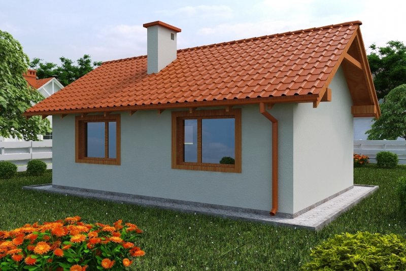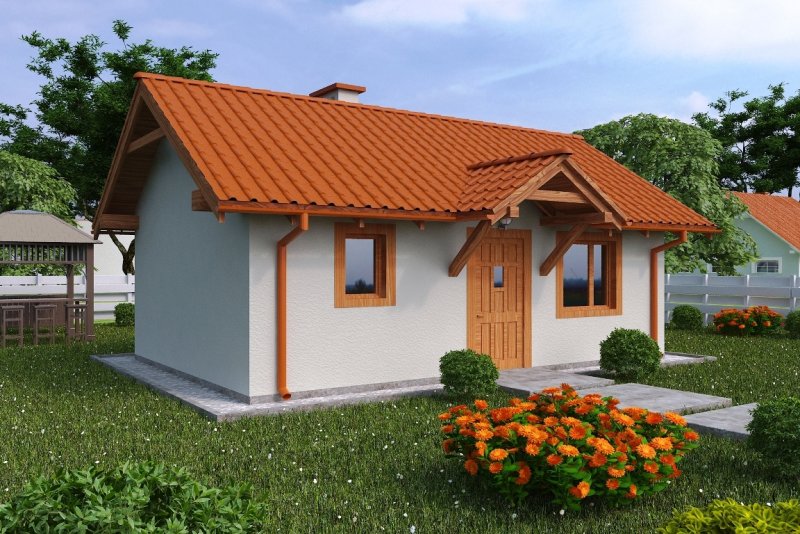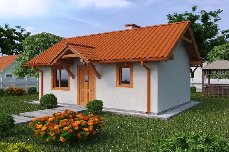 Projekt budynku letniskowego, parterowego, niepodpiwniczonego, z pokojem wypoczynkowym, aneksem kuchennym, pokojem sypialnym i łazienką. Do projektu dołączone jest zestawienie: stali, więźby dachowej oraz stolarki drzwiowej, jak równieżbezpłatna zgoda na dokonanie zmian.