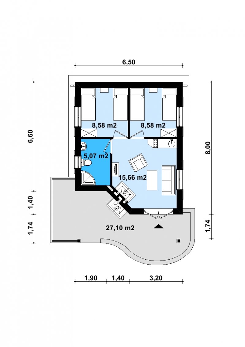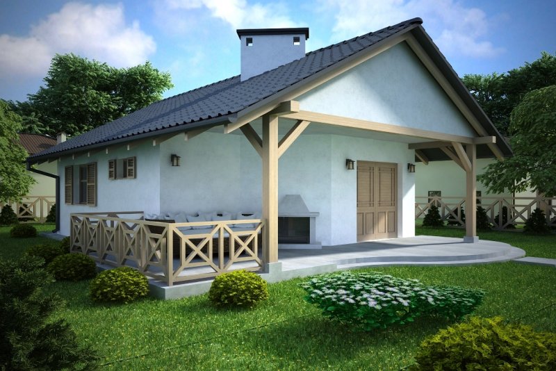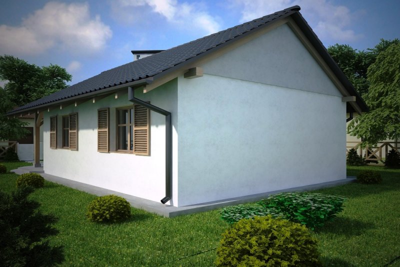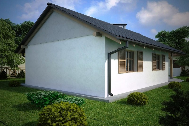 Projekt budynku letniskowego, parterowego, niepodpiwniczonego, z pokojem wypoczynkowym, aneksem kuchennym, dwoma pokojami i łazienką. Do projektu dołączone jest zestawienie: stali, więźby dachowej oraz stolarki drzwiowej, jak równieżbezpłatna zgoda na dokonanie zmian.