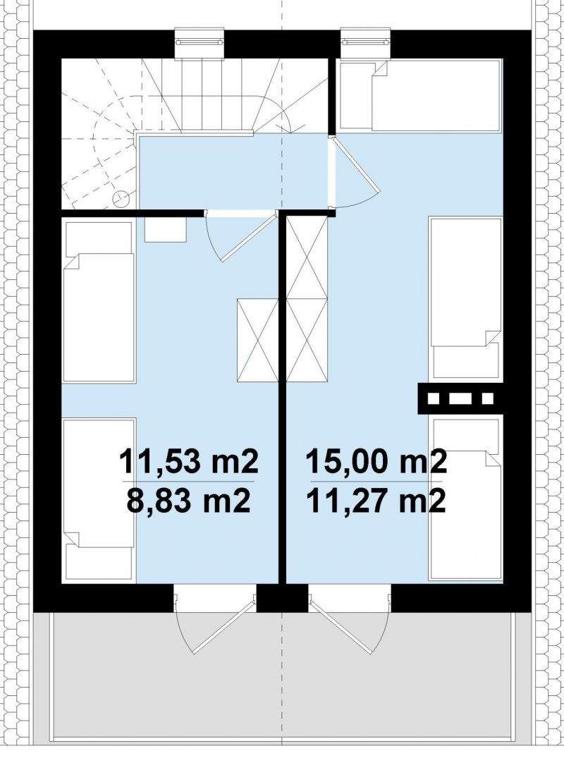 Projekt budynku letniskowego, parterowego, nie podpiwniczonego z poddaszem użytkowym, pokojem wypoczynkowym, aneksem kuchennym, dwoma pokojami i łazienką. Do projektu dołączone jest zestawienie: stali, więźby dachowej oraz stolarki drzwiowej, jak równieżbezpłatna zgoda na dokonanie zmian.
