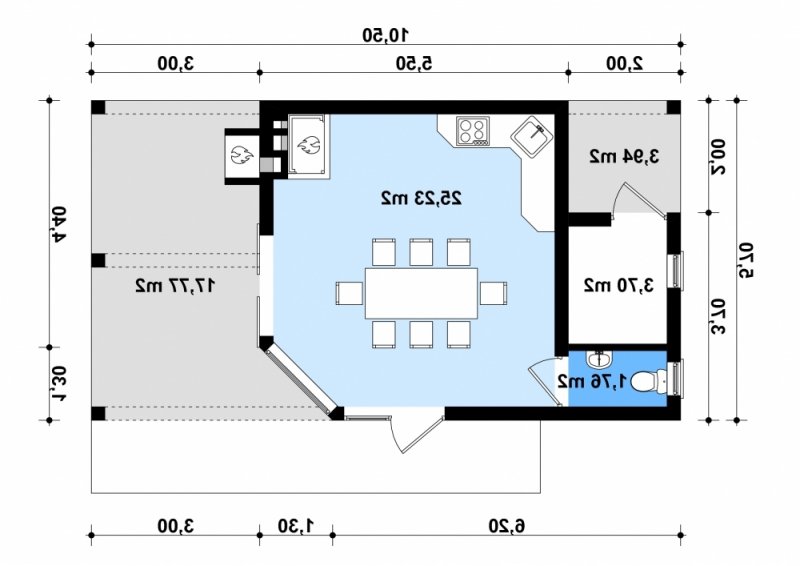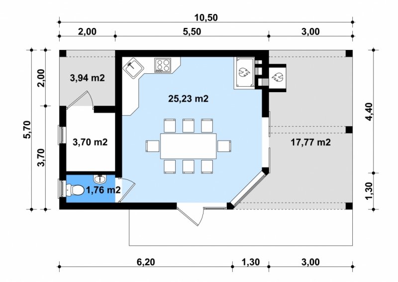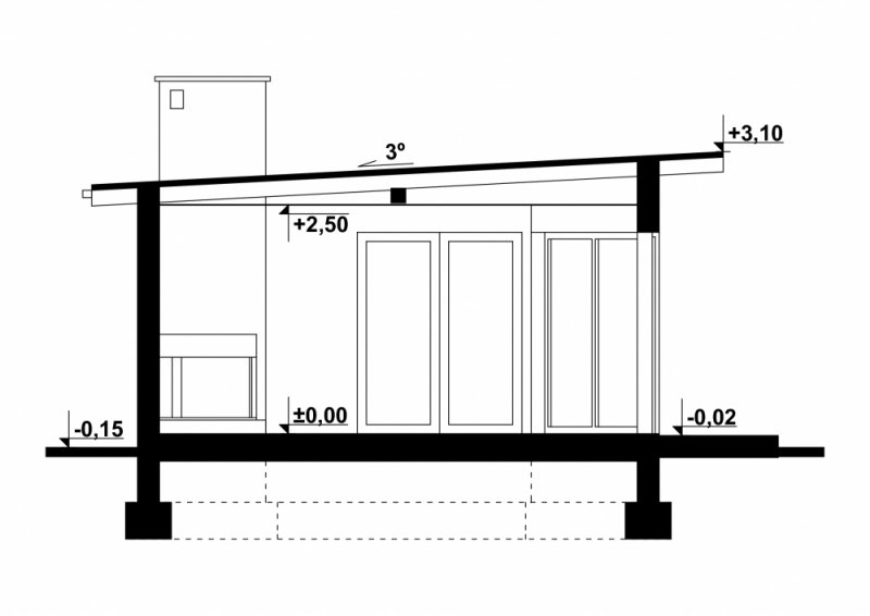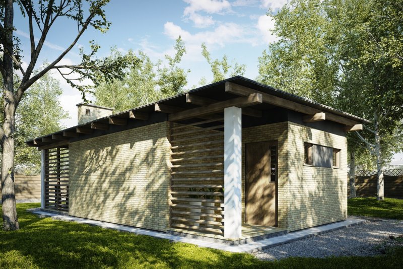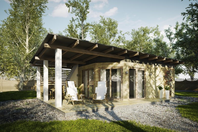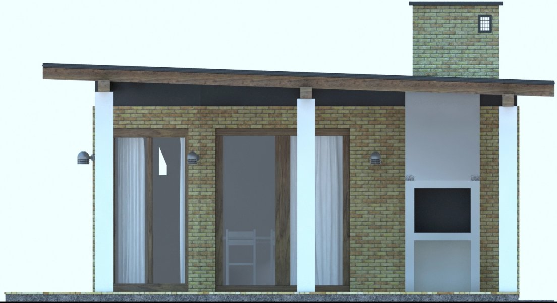 Projekt budynku rekreacyjnego, parterowego, niepodpiwniczonego, pokojem wypoczynkowym, aneksem kuchennym, pomieszczeniem gospodarczym i łazienką. Do projektu dołączone jest zestawienie: stali, więźby dachowej oraz stolarki drzwiowej, jak również bezpłatna zgoda na dokonanie zmian.
