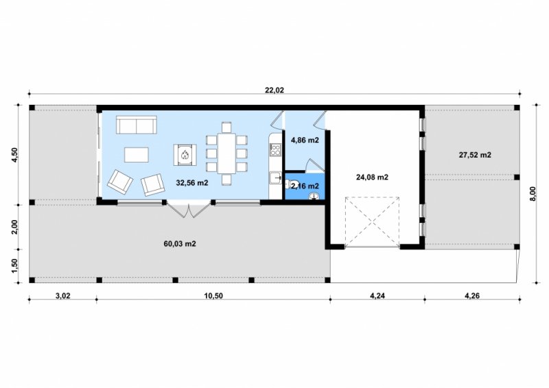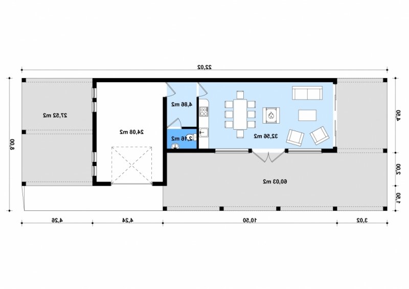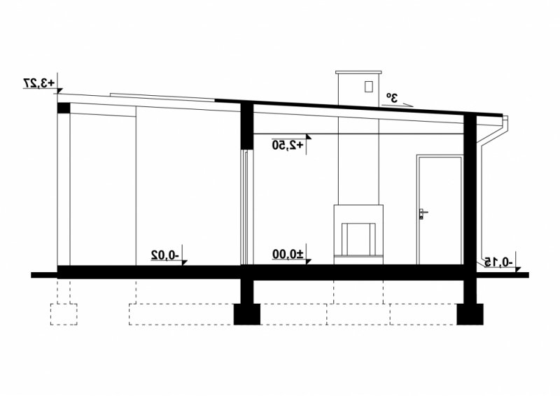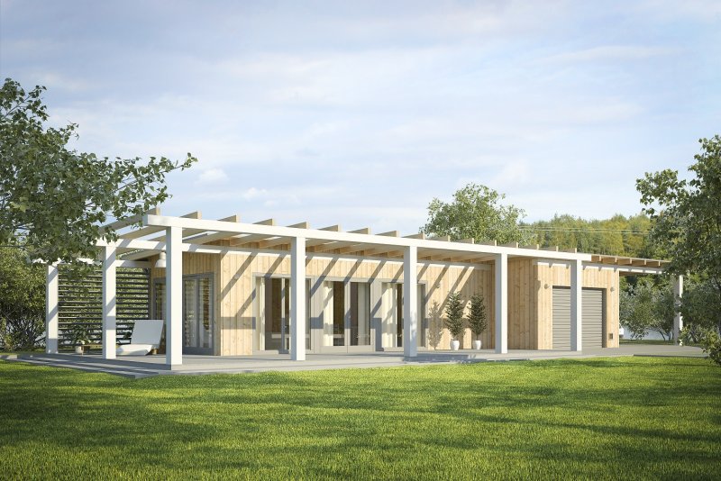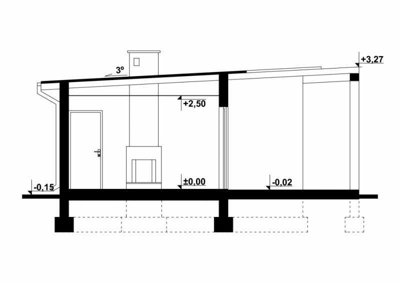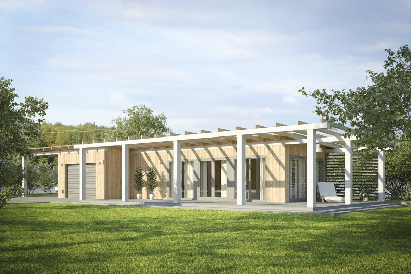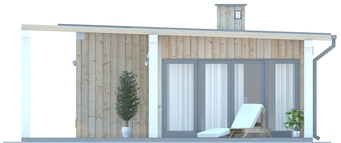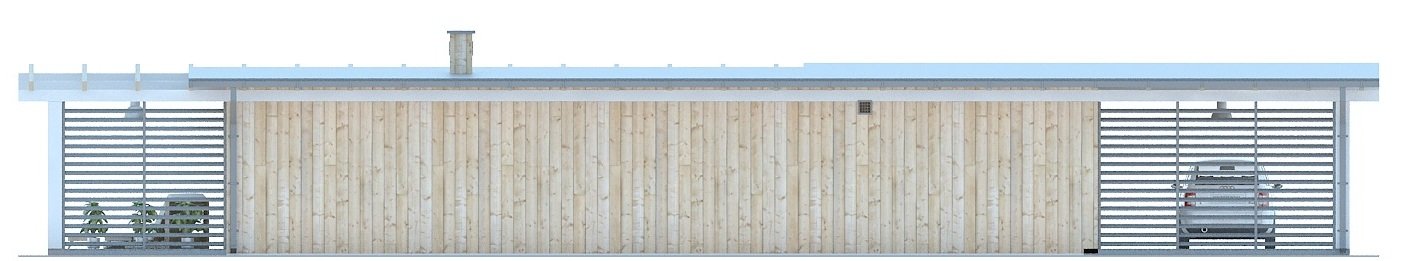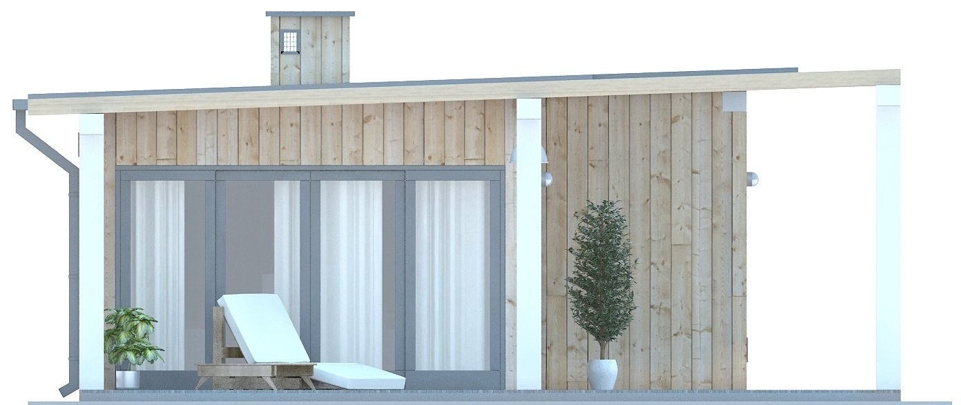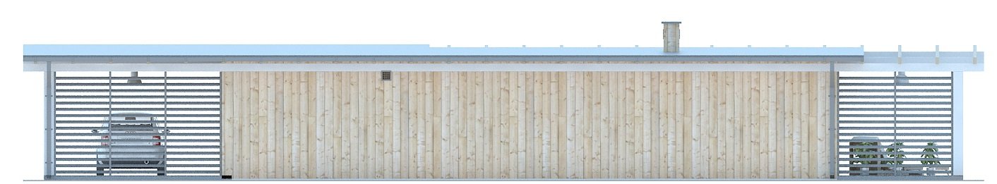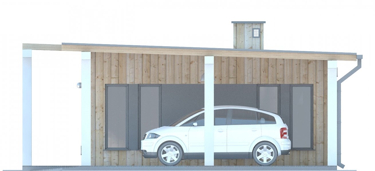 Projekt budynku rekreacyjnego, parterowego, niepodpiwniczonego, pokojem wypoczynkowym, aneksem kuchennym, pomieszczeniem gospodarczym, łazienką, garażem jednostanowiskowym, przeznaczonym dla samochodów osobowych i wiatą. Do projektu dołączone jest zestawienie: stali, więźby dachowej oraz stolarki drzwiowej, jak również bezpłatna zgoda na dokonanie zmian.