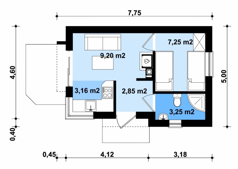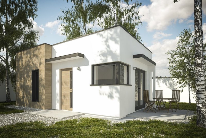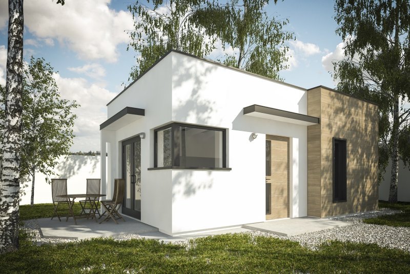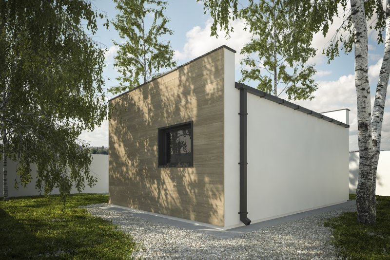Projekt budynku letniskowego, parterowego, niepodpiwniczonego, z pokojem wypoczynkowym, aneksem kuchennym, pokojem sypialnym i łazienką. Do projektu dołączone jest zestawienie: stali, więźby dachowej oraz stolarki drzwiowej, jak równieżbezpłatna zgoda na dokonanie zmian.