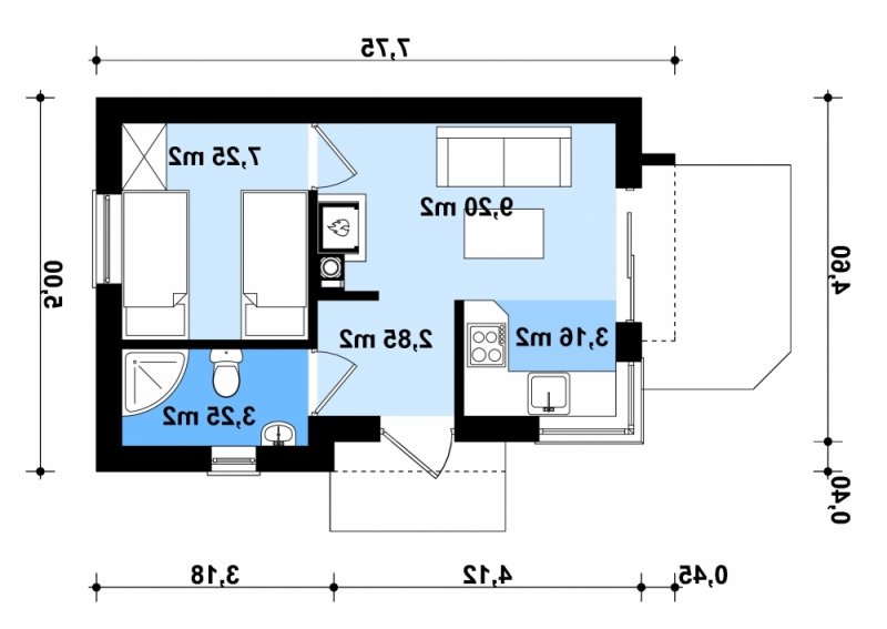 - Wysokość budynku 3.55 m