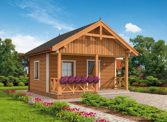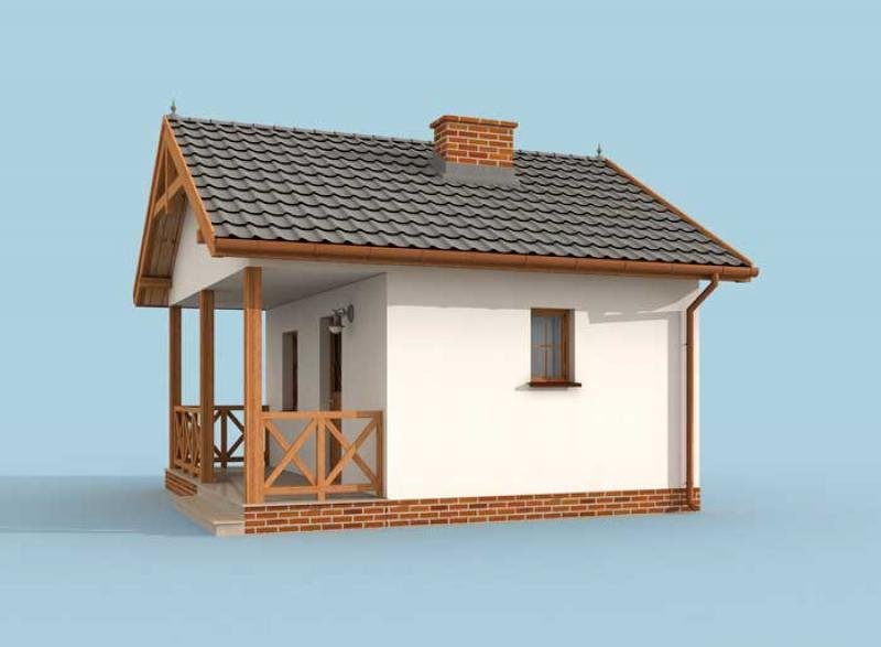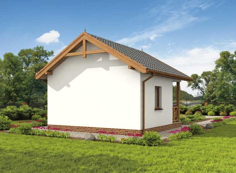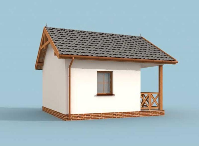 Możliwość budowy na zgłoszenie po zmianie nazwy na budynek gospodarczy. Zdecydują się na niego wszyscy, którzy nie mają wielkich wymagań, chcą jedynie spokoju i zasłużonego wypoczynku w zaciszu. Dostępność projektu w wersji z obiciem drewnianym sprawia, że z pewnością świetnie będzie się prezentował poza miastem. Drewniana weranda oraz ciepły kolor ścian są idealnym połączeniem, dachówka, pokrywająca dwuspadowy dopełnia całości. Uwagę zwracają wieńczące go spiczaste wykończenia oraz weranda zachęcająca gości do wejścia. Przyjaźnie i z rozwagą zaprojektowane wnętrze, na które składają się: wiatrołap, jadalnia, pokój dzienny wyposażony w miejsce na kominek oraz łazienka dopełniająca całości. Haga to kompletny budynek, w którym znajdziemy wszystko, co do komfortowego wypoczynku konieczne. Dostępność projektu w wersji standardowej i w obiciu drewnianym ścian sprawia, że Haga jest warta rozwagi Inwestora. Projekt składa się z części architektonicznej, konstrukcyjnej, wewnętrznych instalacji wod.-kan i elektrycznych. W projekcie załączone są podstawowe zestawienie stali, drewna i stolarki okienno-drzwiowej. Do projektu dołączamy bezpłatną zgodę na wprowadzenie zmian, oświadczenie projektantów o wykonaniu projektu zgodnie z obowiązującymi normami i przepisami oraz kserokopie uprawnień projektantów wraz z aktualnym wpisem do izby. W przypadku zamówienia projektu w technologii lekkiej, drewnianej konstrukcji szkieletowej, powierzchnia użytkowa budynku jest o około 7% większa.