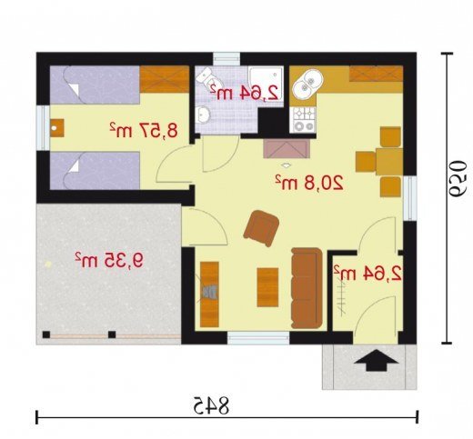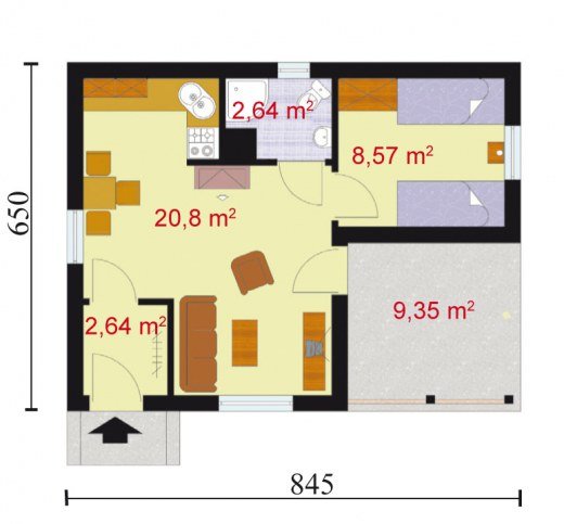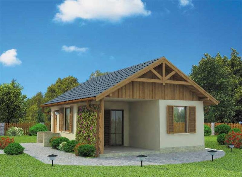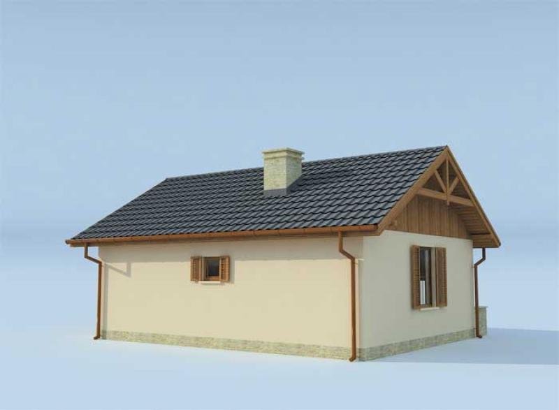 Projekt dostępny również jako CAŁOROCZNY!!! Cena projektu w wersji całorocznej- 1900zł. Ze względu na docieplenie budynku do każdego wymiaru widocznego na rzucie należy dodać 20cm. "Hawana" Prosty, estetyczny, funkcjonalny domek letniskowy. Od frontu zdobią go drewniane okiennice, a także pergola, tworząca od wiosny do jesieni uroczą, zieloną ścianę sporej werandy. Zgrabną bryłę domku nakrywa szary spadzisty dach. Ciepła kremowa barwa ścian i sporo drewnianych elementów wykończeniowych (m.in. pod spadem dachu na bocznych elewacjach) sprawiają, że domek emanuje niezwykłym ciepłem, obiecując miłe chwile w przytulnym wnętrzu. Centralnym pomieszczeniem w Hawanie jest obszerny, ciekawie rozplanowany pokój dzienny, z którego wychodzi się na werandę. Wydzielono w nim funkcjonalne kąciki: jadalny, wypoczynkowy i oczywiście wygodny aneks kuchenny. Pomieszczenie to wraz z sypialnią, łazienką i wiatrołapem tworzy idealne wnętrze letniego domku. Projekt składa się z części architektonicznej, konstrukcyjnej, wewnętrznych instalacji wod.-kan, c. o. i elektrycznej. W projekcie załączone są podstawowe zestawienie stali, drewna i stolarki okienno-drzwiowej. Do projektu dołączamy bezpłatną zgodę na wprowadzenie zmian, oświadczenie projektantów o wykonaniu projektu zgodnie z obowiązującymi normami i przepisami oraz kserokopie uprawnień projektantów wraz z aktualnym wpisem do izby. W przypadku zamówienia projektu w technologii lekkiej, drewnianej konstrukcji szkieletowej, powierzchnia użytkowa budynku jest o około 7% większa.