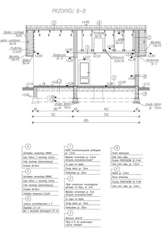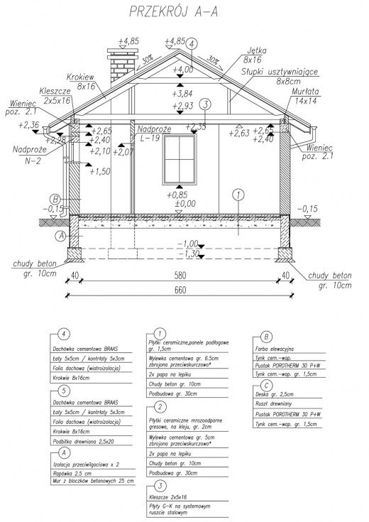 Technologia tradycyjna , ściany zewnętrzne murowane grubości 30 cm, działowe gr. 12 cm. Wszystkie ściany wykonane z pustaków ceramicznych "POROTHERM". Konstrukcja więźby dachowej drewniana, pokrycie dachówka ceramiczna. Istnieje mozliwośc adaptacji obiektu na budynek całoroczny - docieplenie warstwą styropianu gr. 10 cm.