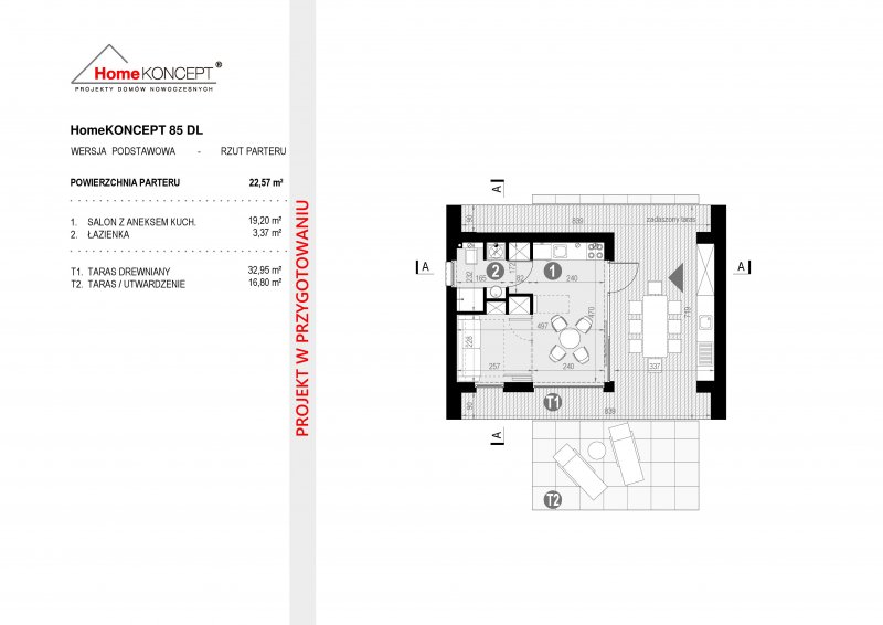 - Min. wymiary działki 14.91x12.36 m