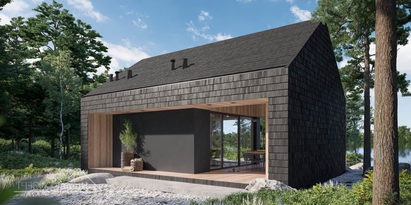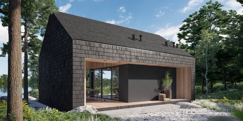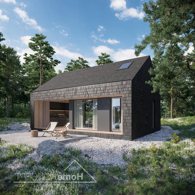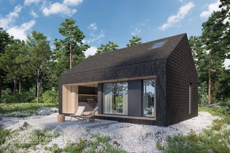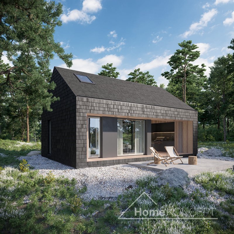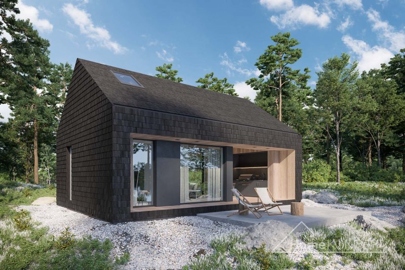 Dom letniskowy z antresolą, wolnostojący.