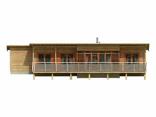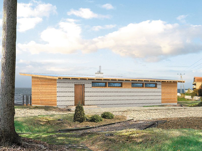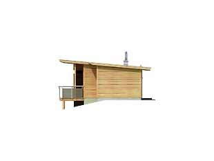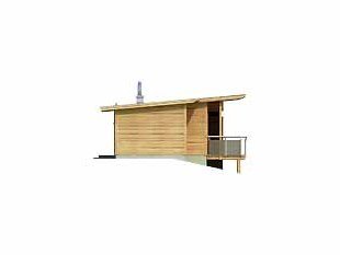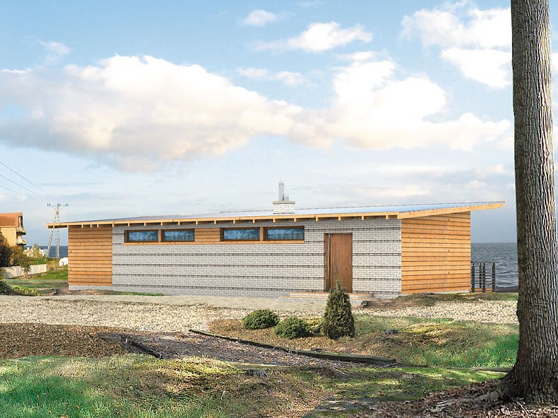 Dom letniskowy dla czterech osób. W awangardowej bryle zaprojektowano nowoczesne wnętrze. W aneksie łazienkowym zaprojektowano miejsce na saunę. Istnieje możliwość adaptacji na dom mieszkalny, jednorodzinny.