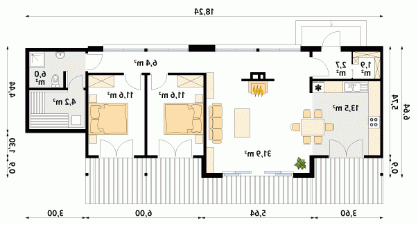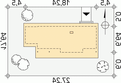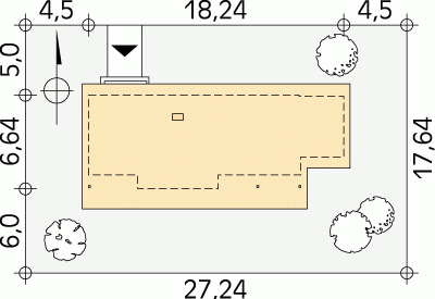 - Min. wymiary działki 27.24x17.64 m