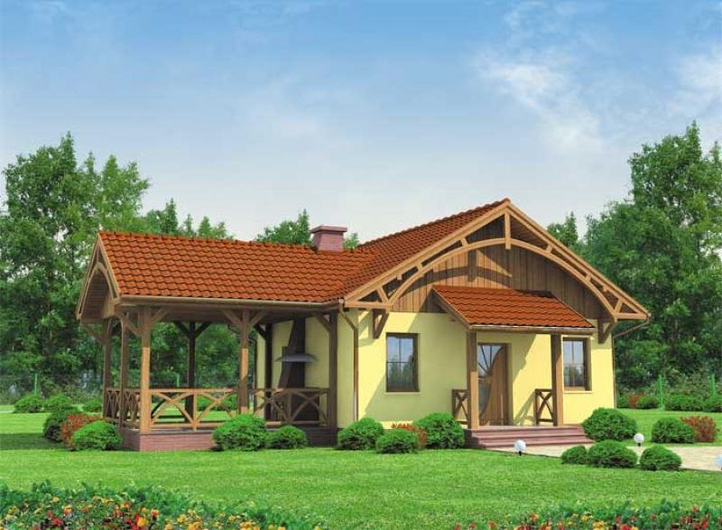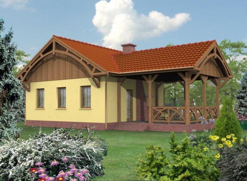 "La Lora 2 Małe jest piękne chciałoby się powiedzieć na widok tego zgrabnego domku. Idealne proporcje, niewielkie rozmiary, przyjazna sylwetka. La Lora z pewnością budzi zaufanie. Znakomicie spisuje w roli całorocznego gniazdka dla niewielkiej rodziny, ale równie dobrze może być traktowany jako letniskowa "odskocznia". Dom jest wyjątkowy także ze względu na starannie dobrana kolorystykę ciepły beż elewacji, równie ciepły brąz drewnianych wykończeń oraz miękkie szarości dachówki, kamiennych podmurówek, schodków i efektownego komina tworzą oryginalną kompozycję estetyczną. Małe jest nie tylko piękne, a w dodatku i przytulne. Wnętrze domu kryje wszystko, co potrzebne, by mieszkać komfortowo i wygodnie. Przestronny pokój dzienny, z którego przez niewielki taras można wyjść prosto do ogrodu, obiecuje spokojny relaks, a połączona z kuchnią jadalnia to miejsce, które ma szanse stać się sercem rodzinnego ogniska, skupiając domowników przy wspólnych posiłkach. Oprócz sypialni i łazienki znalazło się również miejsce na niewielką garderobę. Projekt składa się z części architektonicznej, konstrukcyjnej, wewnętrznych instalacji wod.-kan, c. o. i elektrycznej. W projekcie załączone są podstawowe zestawienie stali, drewna i stolarki okienno-drzwiowej. Do projektu dołączamy bezpłatną zgodę na wprowadzenie zmian, oświadczenie projektantów o wykonaniu projektu zgodnie z obowiązującymi normami i przepisami oraz kserokopie uprawnień projektantów wraz z aktualnym wpisem do izby. W przypadku zamówienia projektu w technologii lekkiej, drewnianej konstrukcji szkieletowej, powierzchnia użytkowa budynku jest o około 7% większa.