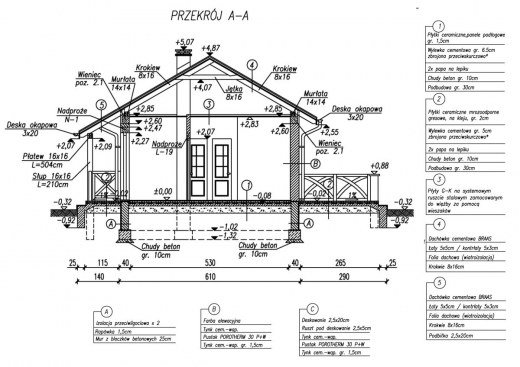 Technologia tradycyjna , ściany zewnętrzne murowane grubości 30 cm, działowe gr. 12 cm. Wszystkie ściany wykonane z pustaków ceramicznych POROTHERM. Konstrukcja więźby dachowej drewniana, pokrycie dachówka ceramiczna. Istnieje mozliwośc adaptacji obiektu na budynek całoroczny - docieplenie warstwą styropianu gr. 10 cm.