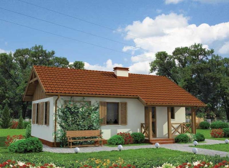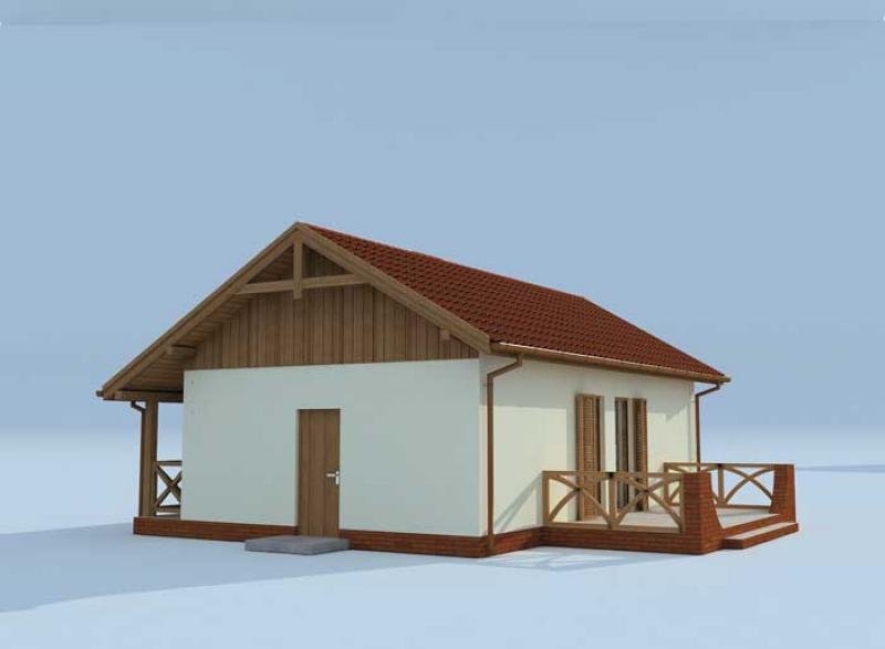 La palma - dom letniskowy To uroczy domek letniskowy, niepodpiwniczony, z kątem nachylenia dachu 30 stopni, bez możliwości adaptacji kotłowni na węgiel. Drzwi frontowe zostały umieszczone pod niewielkim zadaszeniem, tworzącym niewielki ganeczek. W elewacji bocznej lewej przewidziano dwa okna, zapewniające wiele światła wewnątrz domku. Wnętrze zaskoczy nas funkcjonalnością rozwiązań, niewielka powierzchnia domku została podzielona w taki sposób, by zaspokoić potrzeby wszystkich wypoczywających w nim osób. Wchodzimy do domu przez niewielki wiatrołap i od razu po prawej stronie mamy wejście do łazienki, którą możemy zaopatrzyć w prysznic, a nawet wannę. Do ściany wschodniej domu przylega także pomieszczenie gospodarcze, do którego wejść możemy bezpośrednio z podwórka (prawa strona budynku). Oprócz łazienki mamy także w środku ogromny pokój dzienny połączony z kuchnią, gdzie z kolei możemy wydzielić miejsce na jadalnię. Warto zwrócić uwagę na fakt, iż bezpośrednio z tego pomieszczenia można wyjść na obszerny taras usytuowany z tyłu domu. Takie ulokowanie tarasu umożliwi pełny relaks w cieniu domu. W gorące dni będziemy mogli rozkoszować się tutaj zapachem kwitnących w ogrodzie roślin. Wewnątrz przewidziano także miejsce na dwie sypialnie – każdą z dużym oknem. Oznacza to, że w domku może swobodnie wypoczywać czteroosobowa rodzina. Projekt La Palma zachwyca zatem przemyślanym układem pomieszczeń, które okazuje się bardzo ekonomicznym rozwiązaniem. Pomieszczenie gospodarcze zostało tak umieszczone, by sprzyjało zajęciom ogrodniczym. Uroczy taras usytuowany z tyłu domu, da odpoczywającym tu osobom poczucie intymności i pozwoli na bliski kontakt z naturą. Projekt jest także dostępny w wersji całorocznej – warto wziąć pod uwagę taką opcję, gdy decydujemy się na inwestycję w domek, który stanie się miejscem ukojenia oraz wypoczynku od zgiełku miasta i ciężkiej pracy. Projekt składa się z części architektonicznej, konstrukcyjnej, wewnętrznych instalacji wod.-kan, c. o. i elektrycznej. W projekcie załączone są podstawowe zestawienie stali, drewna i stolarki okienno-drzwiowej. Do projektu dołączamy bezpłatną zgodę na wprowadzenie zmian, oświadczenie projektantów o wykonaniu projektu zgodnie z obowiązującymi normami i przepisami oraz kserokopie uprawnień projektantów wraz z aktualnym wpisem do izby. W przypadku zamówienia projektu w technologii lekkiej, drewnianej konstrukcji szkieletowej, powierzchnia użytkowa budynku jest o około 7% większa.