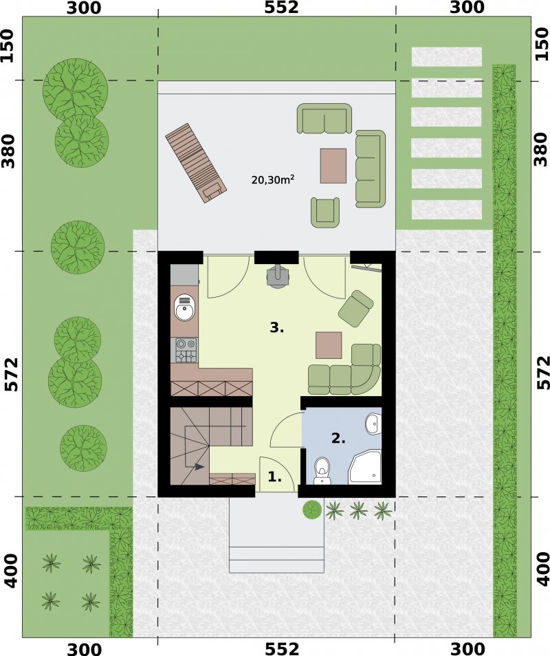| 3 | Salon z kuchnią i kominkiem | 15.1 | 15.1 |