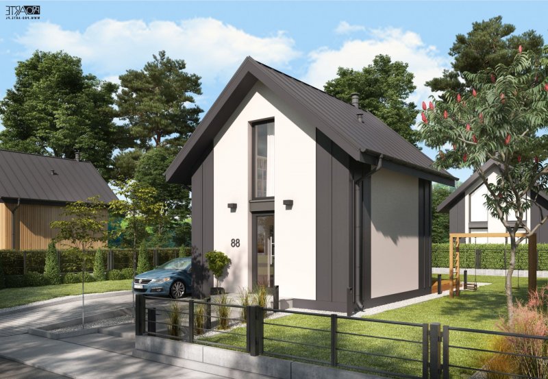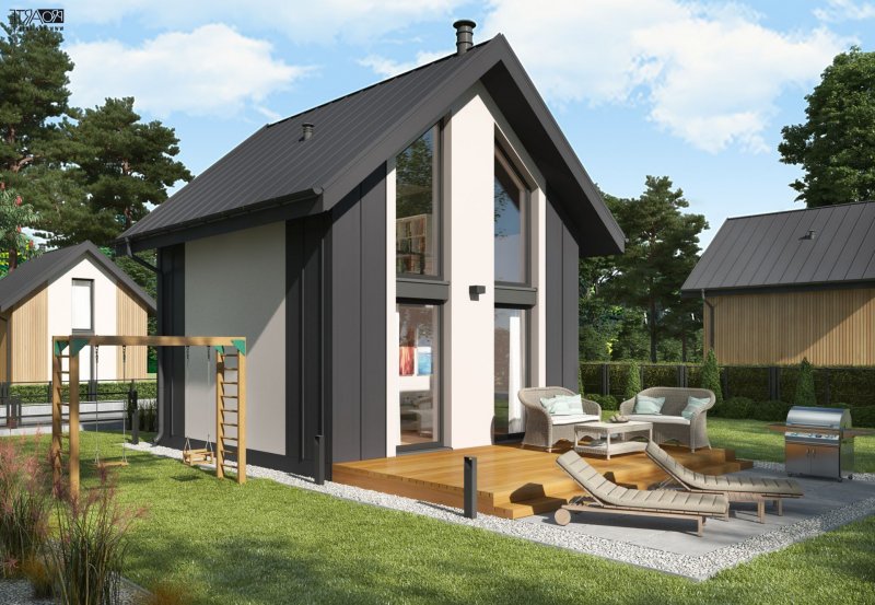 prosta bryła, esencjonalne funkcje, nowoczesny design - idealny na dom przeznaczony do rekreacji i wakacyjnych wyjazdów. Pierwszy w naszej ofercie dom z antresolą i pełnymi schodami. Projekt na pozwolenie na budowę ze względu na schody oraz antresolę z sypialnią. Można ewentualnie skonsultować z urzędnikiem rozwiązania zaproponowane w projekcie i spytać o interpretację, czy można ten dom postawić na zgłoszenie, czy raczej na pozwolenie.