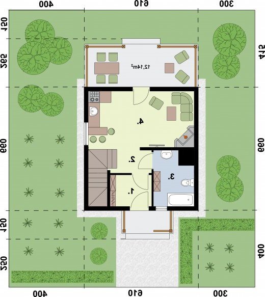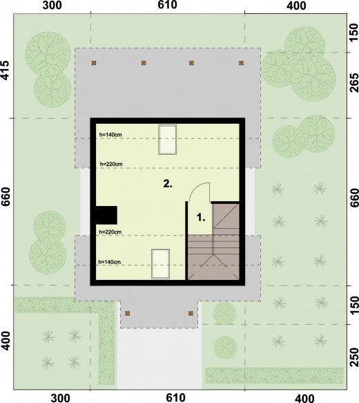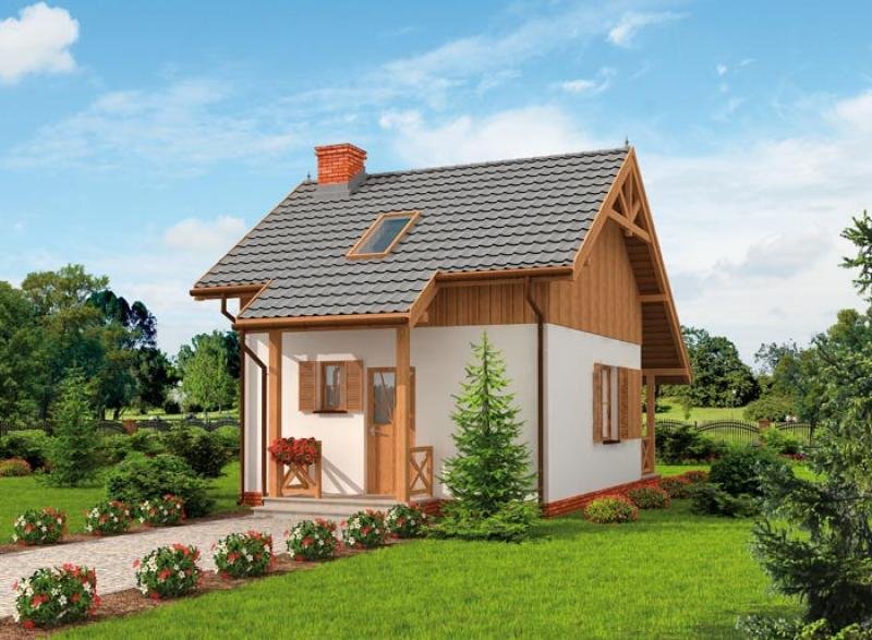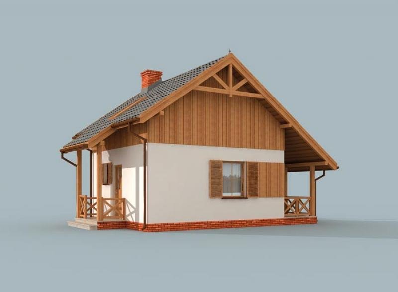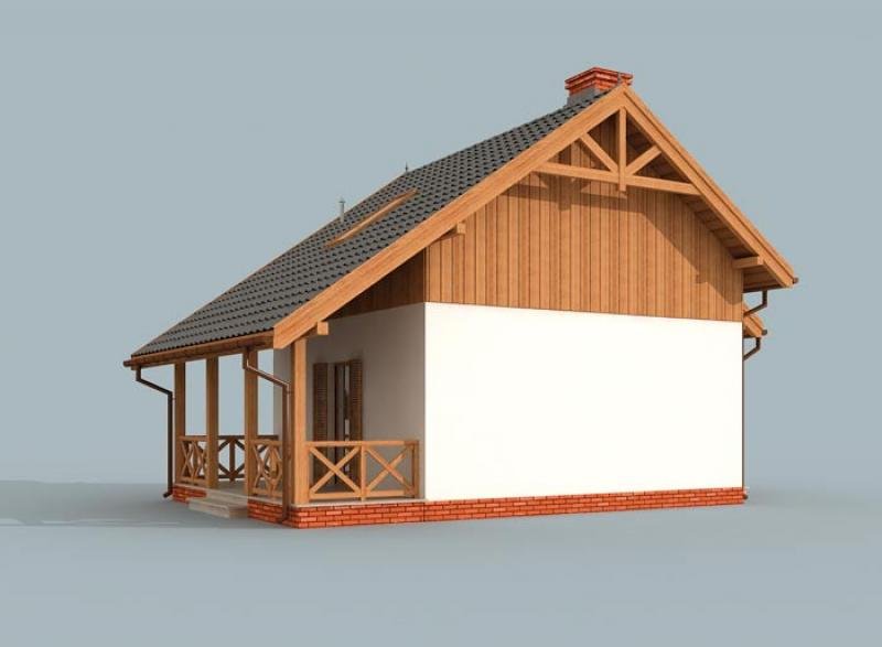 LUIZJANA - dom letniskowy, świetna propozycja dla inwestorów z pomysłami. Do zagospodarowania według własnego uznania pozostaje piętro. Dwuspadowy dach oraz zgrabne i przemyślane wnętrza, sprawiają, że Luizjana trafia do przekonania coraz większej rzeszy klientów. Weranda wiedzie do wiatrołapu, z którego przechodzi się do komunikacji. Po lewej stronie znajduje się łazienka, natomiast po prawej stronie jest komunikacja wiodąca na piętro. Od komunikacji na wprost usytuowana jest kuchnia, za ścianą znajdziemy pokój dzienny z kominkiem. Jest to miejsce, które z pewnością w zimowe wieczory będzie skupiać życie wypoczywających w domu ludzi. Z tego pokoju można wyjść na taras, będzie można na nim w letnie dni spędzać czas w biesiadnej atmosferze, przy grillu na tarasie, usytuowanym od wschodu.