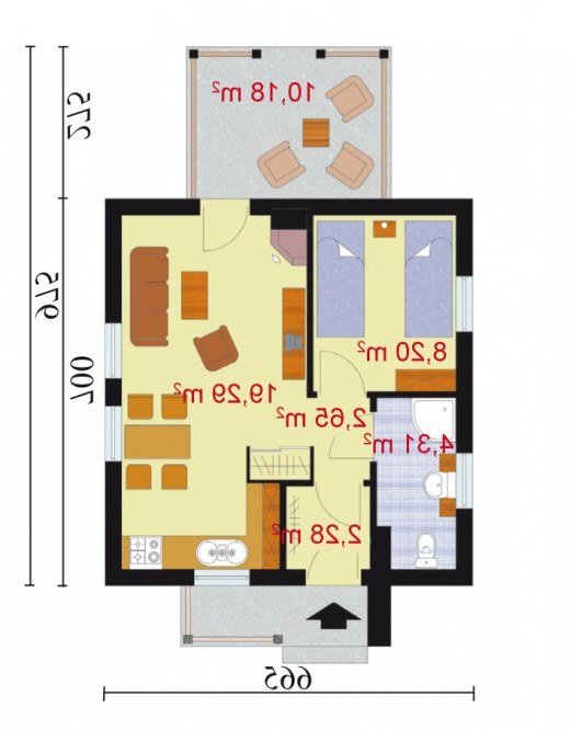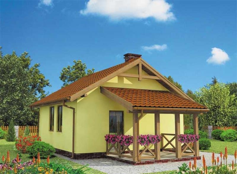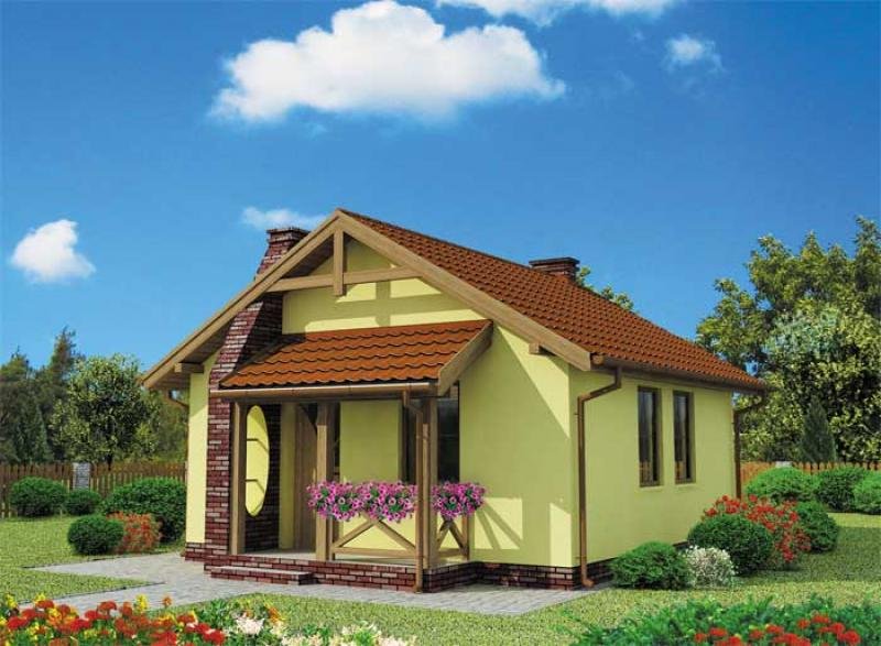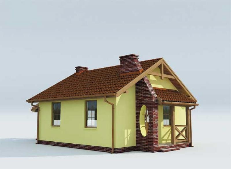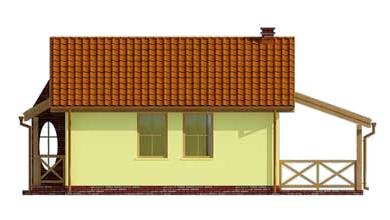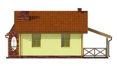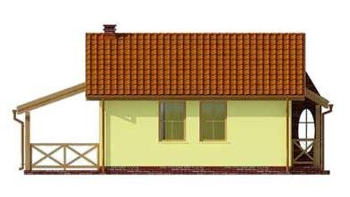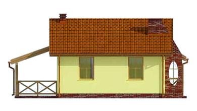 "Marmaris" To uroczy domek letniskowy pełen elegancji i szyku. Wdzięku nadaje mu wbudowana w konstrukcję, prostopadle do przedniej elewacji, ścianka z wyciętym owalnym oknem. Dzięki niej dom nabiera nietypowych kształtów oraz czysto abstrakcyjnej formy. Podobne ścianki dekorujące front budynku prezentują Tuluza oraz Estella. Po zapoznaniu się z tą bajeczną konstrukcją możemy przejść do przytulnego wnętrza Marmaris. Wchodząc do domku wstąpimy do jego pierwszego pomieszczenia, którym jest wiatrołap z garderobą. Przechodząc na wprost do komunikacji znajdziemy się w dogodnym miejscu prowadzącym do wszystkich pomieszczeń tego budynku. Po lewej stronie ulokowana została łazienka, na wprost sypialnia, natomiast kierując się w prawo wejdziemy do przestronnego pokoju mieszczącego kuchnię z aneksem jadalnym i salon. Atrakcją salonu jest kominek, który przyda się w chłodne wieczory, aby rozgrzać atmosferę! Dodatkowo z pomieszczenia tego można przejść na niewielką werandę, która pozwoli nam cieszyć się gorącymi dniami bez obawy o to, że przypiecze nas słonko.