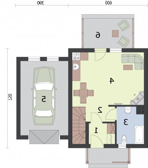 OKLAHOMA 2 - dom letniskowy Oklahoma wyróżnia się indywidualnym charakterem, to przykład rasowego, praktycznego budownictwa: jednopiętrowy dom oraz garaż stanowią świetnie komponującą się całość, mogącą zadowolić niejednego Inwestora. Gustowne elewacje, dachówka, cokolik i elementy drewniane są tylko zapowiedzią dla racjonalnie zaplanowanych wnętrz. Piękno zewnętrzne i wewnętrzne uporządkowanie będą ważnym argumentem dla tych z Inwestorów, którzy widzieliby w nim ciepły, przyjazny dom letniskowy dla rodzin i nie tylko. Zadaszona weranda wiedzie do środka, w wiatrołapie znajdziemy miejsce na szafę pod zabudowę. Zaś po wyjściu z niego, po lewej usytuowano w pełni wyposażoną łazienkę, natomiast po prawej schody wiodące na piętro. Na wprost od komunikacji widoczny jest dwufunkcyjny pokój dzienny z kominkiem oraz aneksem kuchennym. Z tego przestronnego pokoju można wyjść na taras. Jest on dużym udogodnieniem i niewątpliwą zaletą mogącą przekonać tych, którzy cenią biesiady oraz celebrowanie wspólnych posiłków na świeżym powietrzu. Na piętrze znajdują się dwie dość obszerne sypialnie, doświetlone przez znajdujące się na ich południowych i północnych ścianach okna. Garaż będzie bezpiecznym i komfortowym miejscem, w którym zmieści się jeden pojazd średniej lub dużej wielkości. Projekt składa się z części architektonicznej, konstrukcyjnej, wewnętrznych instalacji wod.-kan, c. o. i elektrycznej. W projekcie załączone są podstawowe zestawienie stali, drewna i stolarki okienno-drzwiowej. Do projektu dołączamy bezpłatną zgodę na wprowadzenie zmian, oświadczenie projektantów o wykonaniu projektu zgodnie z obowiązującymi normami i przepisami oraz kserokopie uprawnień projektantów wraz z aktualnym wpisem do izby. W przypadku zamówienia projektu w technologii lekkiej, drewnianej konstrukcji szkieletowej, powierzchnia użytkowa budynku jest o około 7% większa
