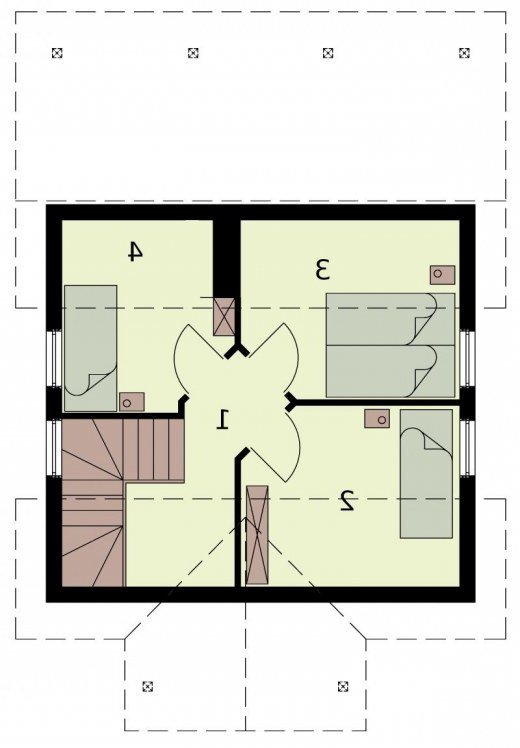 Orlean 4 - projekt domu letniskowego Dla miłośników tradycyjnych rozwiązań i praktycznego piękna stworzony został projekt Orlean 4. Jego urok podkreśla zabudowana weranda i przykryty dachem taras. Dwuspadowy dach oraz zwartość bryły dają efekt bezpieczeństwa i harmonii, który jest potwierdzony precyzją i solidnością konstrukcji. Orlean 4 jest domkiem piętrowym z obszerną przestrzenią na piętrze, znajdziemy tam 3 średniej wielkości sypialnie. Zauważmy, że na poddaszu zostały rozmieszczone trzy sypialnie tak, aby każda posiadała własne wyjście na klatkę schodową. Idąc schodami w dół zejdziemy do niewielkiego przedsionka, z którego łatwo możemy przejść do pomieszczenia zwanego komunikacją, aby następnie odkryć okazały pokój dzienny z aneksem kuchennym oraz łazienkę. Cała przestrzeń domu może być szybko i bez zbędnych strat ciepła ogrzana przez kominek. Znajduje się on w salonie i jest centrum domu. Taras i kominek to miejsca, które w zależności od pory roku najbardziej sprzyjają towarzyskim i rodzinnym spotkaniom. Projekt składa się z części architektonicznej, konstrukcyjnej, wewnętrznych instalacji wod.-kan, c. o. i elektrycznej. W projekcie załączone są podstawowe zestawienie stali, drewna i stolarki okienno-drzwiowej. Do projektu dołączamy bezpłatną zgodę na wprowadzenie zmian, oświadczenie projektantów o wykonaniu projektu zgodnie z obowiązującymi normami i przepisami oraz kserokopie uprawnień projektantów wraz z aktualnym wpisem do izby.
