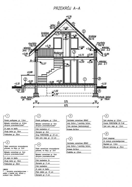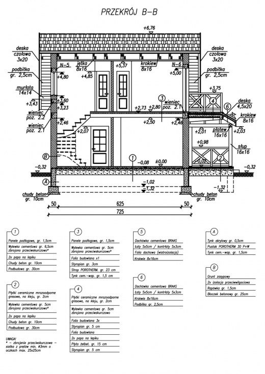 - pokrycie dachówka ceramiczna - docieplenie styropianem ryflowanym o gr. 5cm
