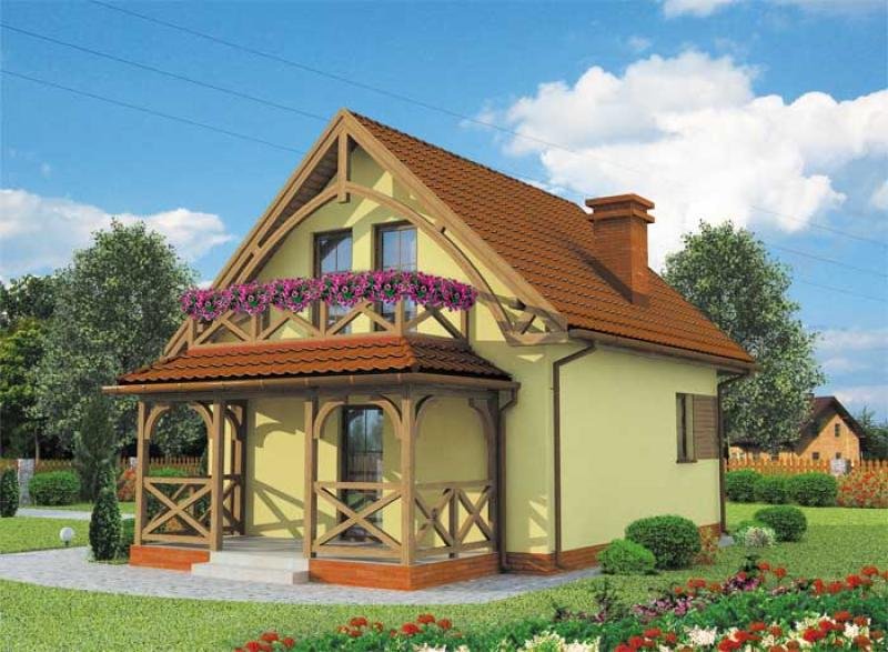 Wszystkim tym, którzy szukają czegoś oryginalnego proponujemy zapoznanie się z projektem domku letniskowego Orlean. Za jego niepowtarzalny styl odpowiedzialne jest poddasze bez okien połaciowych oraz weranda z ślicznym balkonem stanowiącym jej zadaszenie. Na poddaszu zostały rozmieszczone trzy sypialnie tak, aby każda posiadała własne wyjście na klatkę schodową. Idąc schodami w dół zejdziemy do niewielkiego przedsionka, z którego łatwo możemy przejść do pomieszczenia zwanego komunikacją, aby następnie odkryć okazały pokój dzienny z aneksem kuchennym oraz łazienkę. Wypada również wspomnieć o tym, że cała przestrzeń szybko i dogłębnie zostanie ogrzewana przez kominek; przy którym można spędzić mnóstwo romantycznych wieczorów!