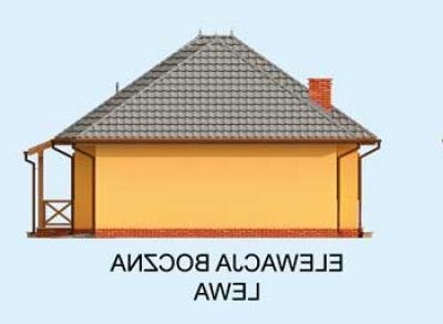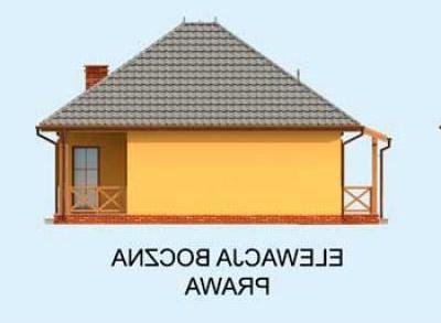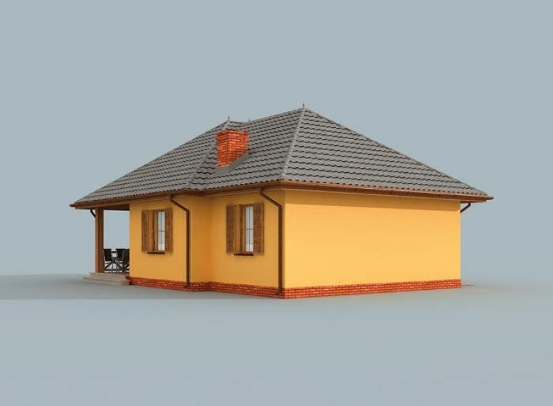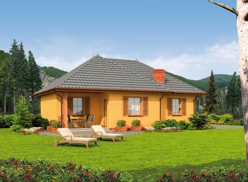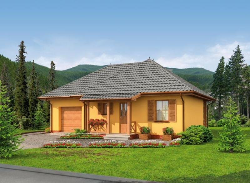 SAN ANTONIO 2 - dom letniskowy Bryła budynku łączy sobą nowoczesność z tradycją. San Antonio 2 to projekt domu letniskowego z garażem. San Antonio to projekt, w którym ważne są wszystkie detale, jest elegancki, stonowany - bez zbędnych udziwnień, pełen spokojnego uroku. Zadaszone wejście, płynnie połączone z kopertowym dachem zachęca do odwiedzenia wnętrz. Weranda wiedzie do wiatrołapu, z którego przechodzi się do przedpokoju. Po lewej stronie znajduje się łazienka, natomiast po prawej stronie komunikacji jest dość obszerna sypialnia. Od przedpokoju na lewo usytuowany jest pokój dzienny z kominkiem, kuchnia jest półotwartym pomieszczeniem. Taras znajdujący się od północnej strony z pewnością będzie miejscem niejednej wesołej biesiady. W garażu znajduje się wystarczająco dużo miejsca dla średniego lub dużego samochodu. Bryła budynku łączy sobą nowoczesność z tradycją.