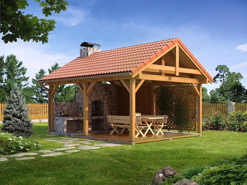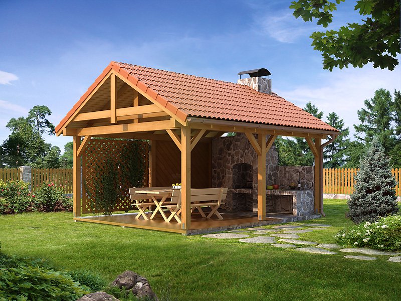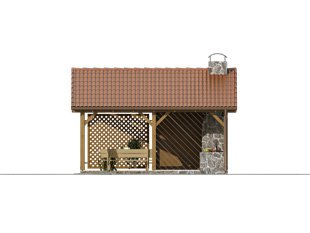 Altanka ogrodowa o tradycyjnej stylistyce z grillem i zapleczem do przygotowania posiłków, o wymiarach 4,45 x 5,64 m. Prosta bryła, dwuspadowy dach czynią ją łatwą w budowie. Idealne miejsce, kulinarnych i towarzyskich spotkań.