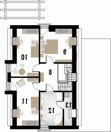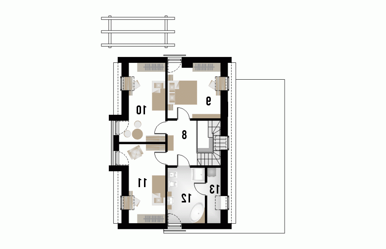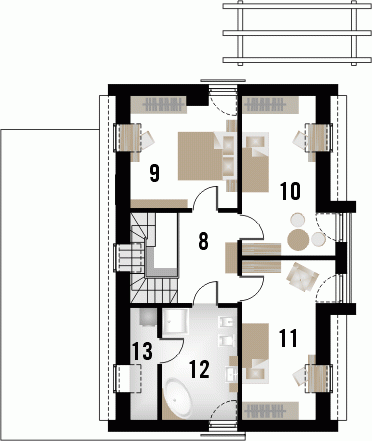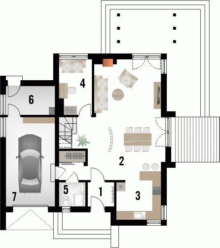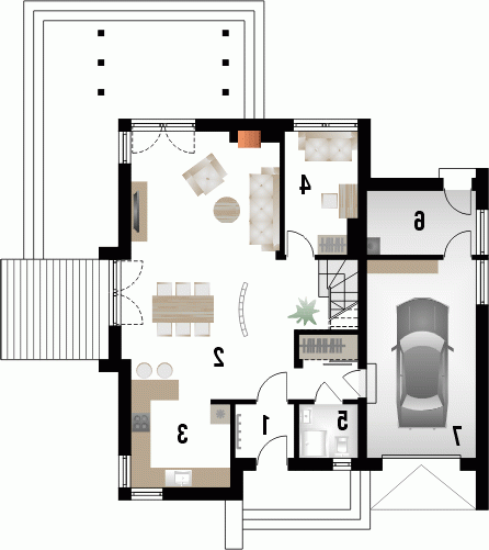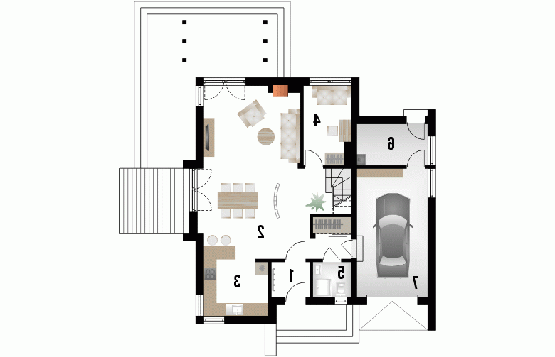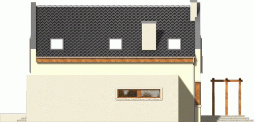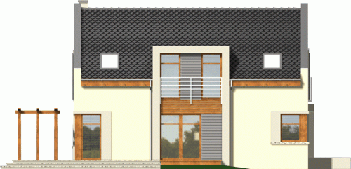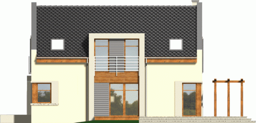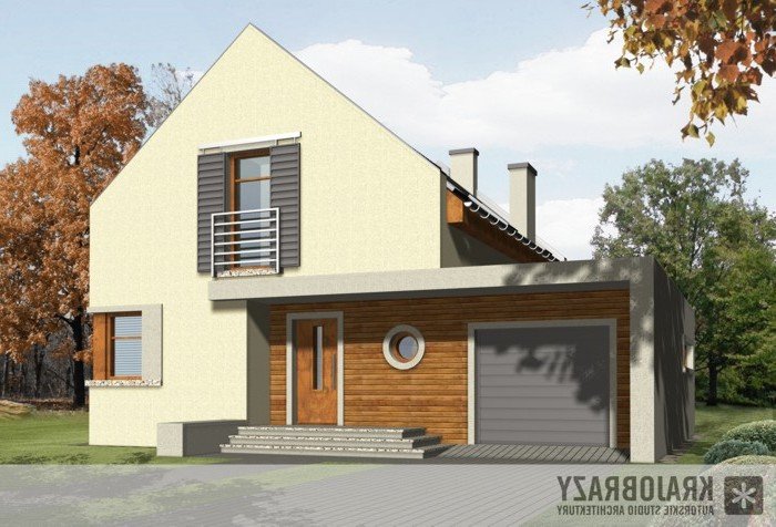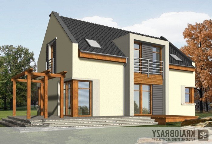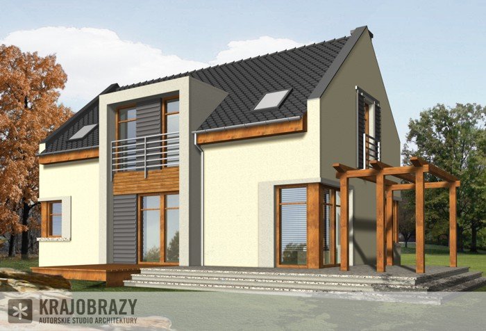 Dom jednorodzinny z grupy projektów nowoczesnych autorstwa pracowni KRAJOBRAZY. Atrakcyjny schemat funkcjonalny budynku został zamknięty w bryle o nowoczesnych detalach. Odpowiednio dobrane materiały wykończeniowe oraz kolorystyka zewnętrzna sprawiają, że dom wygląda współcześnie i będzie dobrze się prezentował w prawie każdym otoczeniu.