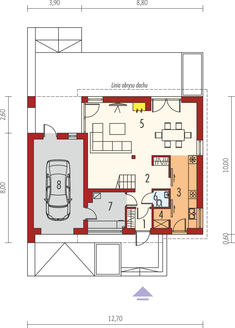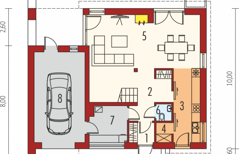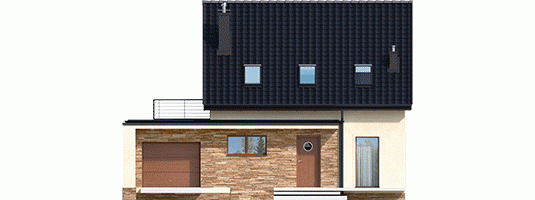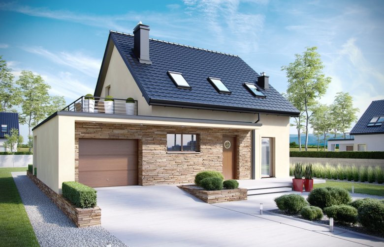 E14 II G1 ECONOMIC to dom urzekający zgrabną bryłą i apetyczną elewacją utrzymaną w pastelowych barwach. Wnętrza zostały rozplanowane z troską o ergonomię i jasny charakter pomieszczeń. Komfortowa strefa wypoczynkowa została poszerzona o fantastyczne tarasy – jeden z nich udało się pomysłowo zaplanować na dachu garażu.