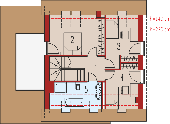 Dach: konstrukcja drewniana, ocieplenie wełna mineralna 30 cm, dachówka cementowa