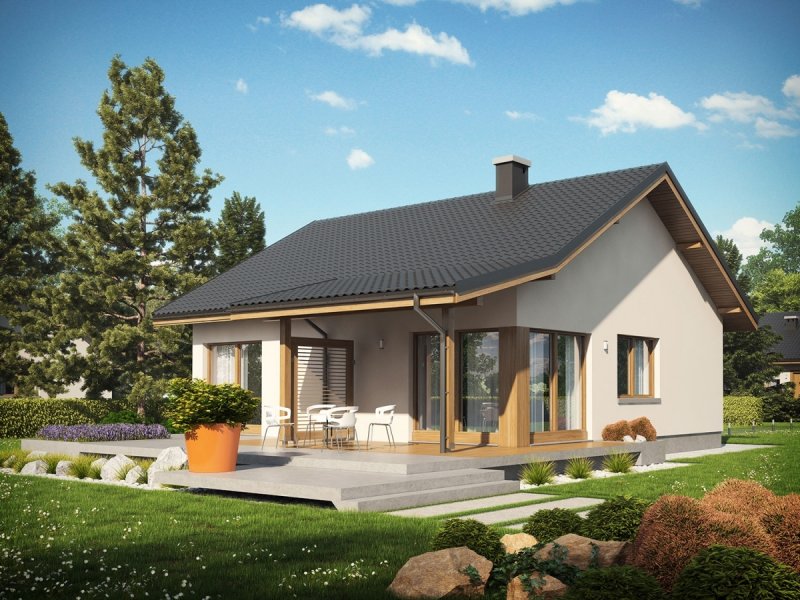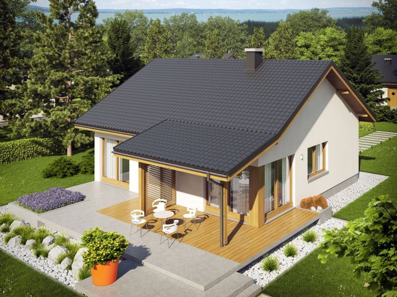 Elmo III ENERGO to nowoczesny, oszczędny w formie dom, który koresponduje z duchem architektonicznego minimalizmu. Dwuspadowy dach, brak zbędnych detali i ascetyczna kompozycja elewacji spełnią oczekiwania inwestorów, którzy cenią surową urodę prostoty. We wnętrzu króluje wygoda i sprawdzone rozwiązania funkcjonalne. Serce domu tworzy komfortowy salon, który za pomocą tarasowego przeszklenia, subtelnie poszerza swą przestrzeń o strefę ogrodu. Elmo III harmonijnie wpisze się w każdy krajobraz, stając się jednocześnie jego atrakcyjną ozdobą, pełną przytulnego uroku.