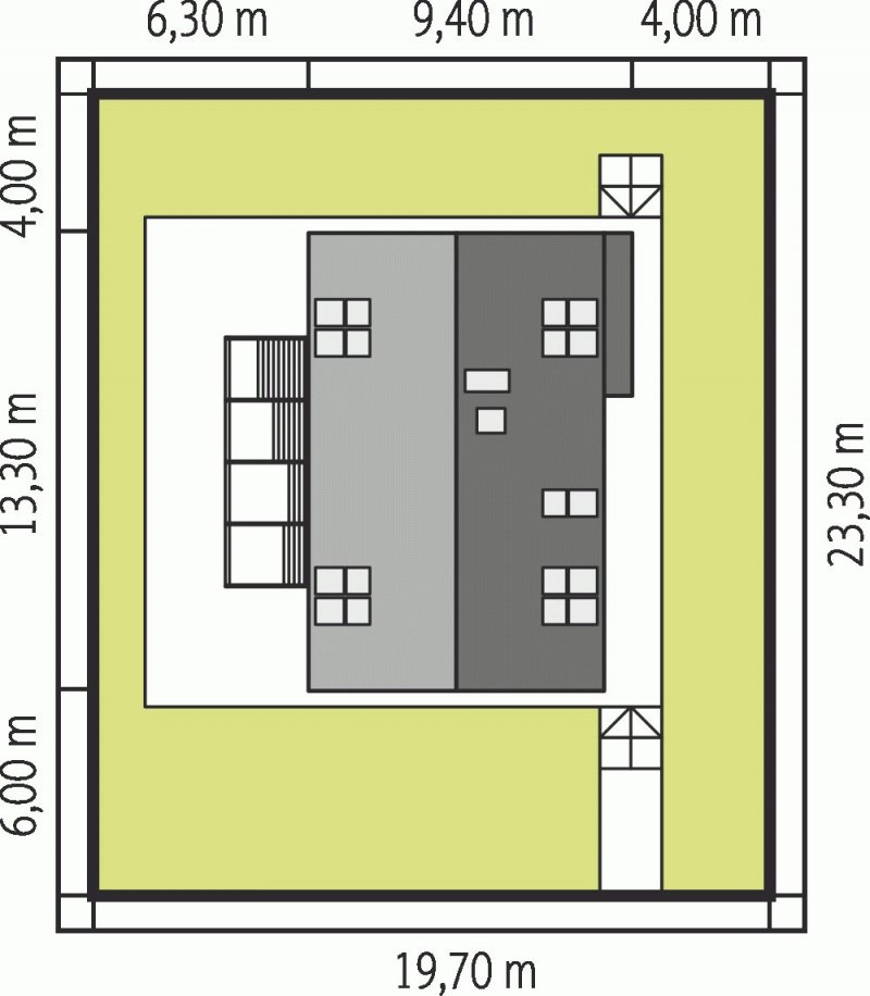 - Min. wymiary działki 19.70x23.30 m