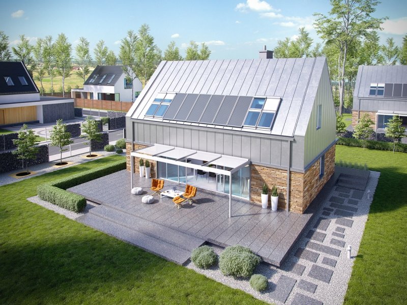 EX 16 Ssoft to dom, który emanuje nowoczesnym wdziękiem. Prosta konstrukcja, geometryczny minimalizm oraz oszczędny detal ograniczają straty energii i sprawiają, że budynek wyróżniają znakomite parametry cieplne. Na elewacji króluje gra materiałów i faktur – naturalna uroda kamienia wchodzi w dialog z gładką powierzchnią ścian i blachy, tworząc intrygujący efekt estetyczny. We wnętrzu czeka na domowników komfortowy podział funkcjonalny. Na parterze, od strony południowej, zaplanowano pomieszczenia wyeksponowane na światło dzienne – salon, kuchnię i jadalnię. Na poddaszu mieści się przytulny azyl nocny.