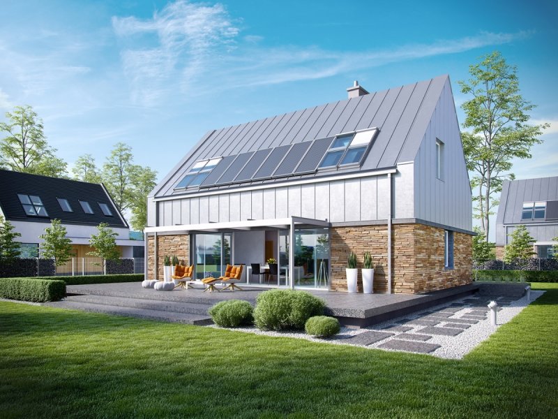 Dach: konstrukcja drewniana, ocieplenie wełna mineralna 30 cm, blacha na rąbek stojący Classic firmy Ruukki