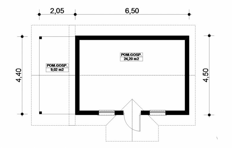 Projekt budynku gospodarczego, parterowego, niepodpiwniczonego z wiatą. Do projektu dołączone jest zestawienie: stali, więźby dachowej oraz stolarki drzwiowej i okiennej, jak równieżbezpłatna zgoda na dokonanie zmian.