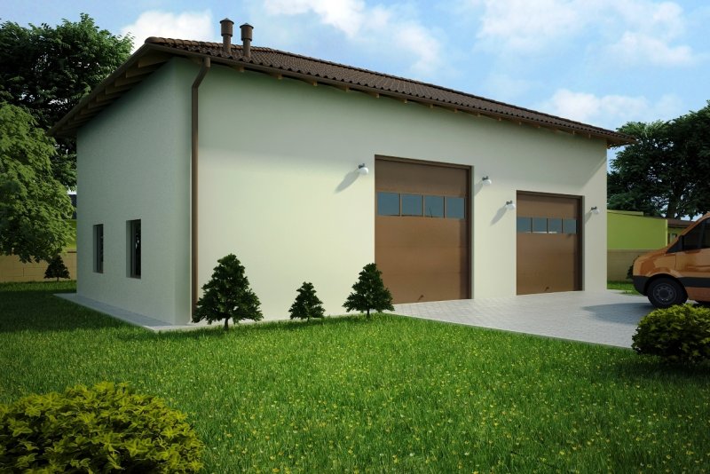 Projekt garażu dwustanowiskowego, parterowego, niepodpiwniczonego, przeznaczonego dla samochodów dostawczych i osobowych z dwoma pomieszczeniami gospodarczymi i łazienką. Do projektu dołączone jest zestawienie: stali, więźby dachowej oraz stolarki drzwiowej i okiennej, jak równieżbezpłatna zgoda na dokonanie zmian.