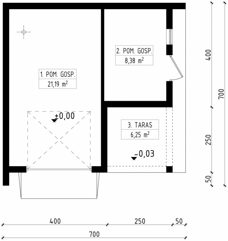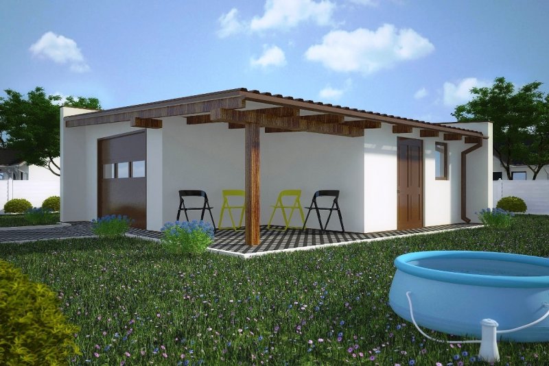 Projekt budynku parterowego, niepodpiwniczonego, z dwoma pomieszczeniami gospodarczymi. Budynek z możliwością budowy w granicy. Do projektu dołączone jest zestawienie: stali, więźby dachowej oraz stolarki drzwiowej i okiennej, jak równieżbezpłatna zgoda na dokonanie zmian.