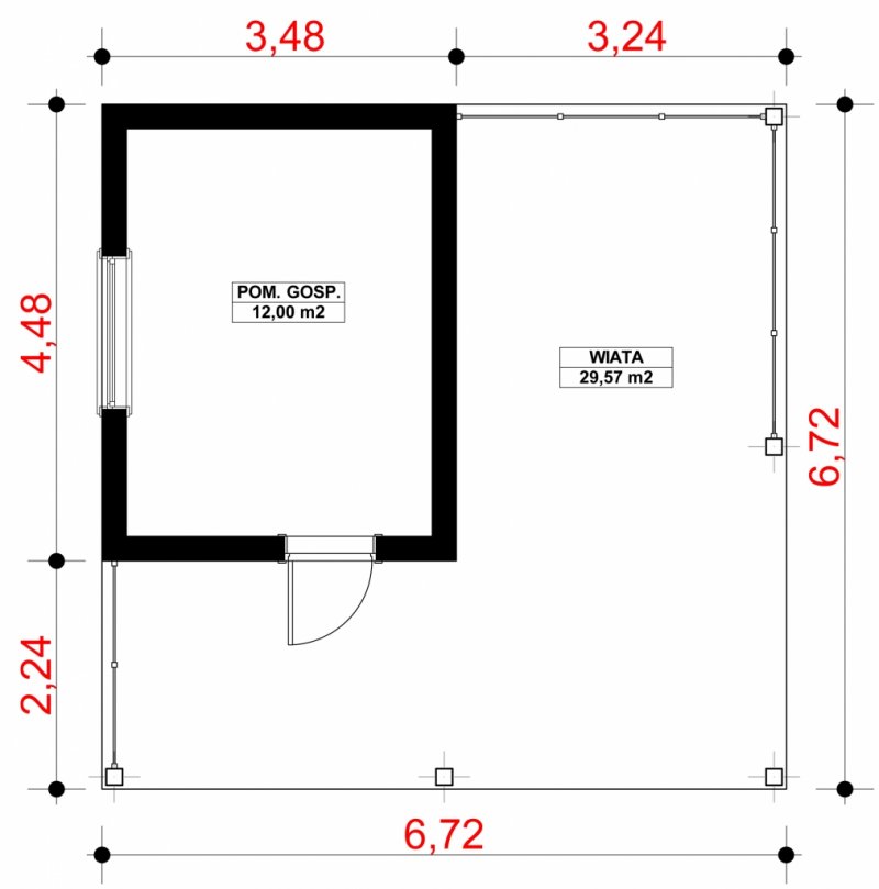 Projekt budynku gospodarczego, parterowego, niepodpiwniczonego, z wiatą. Do projektu dołączone jest zestawienie: stali, więźby dachowej oraz stolarki drzwiowej i okiennej, jak równieżbezpłatna zgoda na dokonanie zmian.