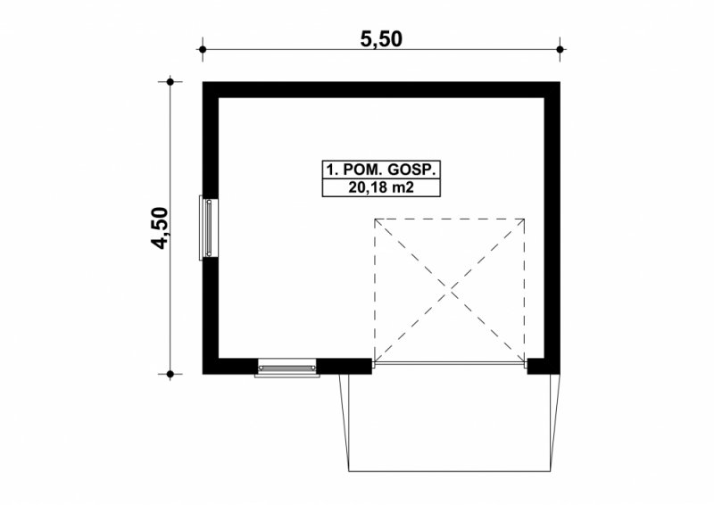Projekt budynku gospodarczego, parterowego, niepodpiwniczonego. Do projektu dołączone jest zestawienie: stali, więźby dachowej oraz stolarki drzwiowej i okiennej, jak równieżbezpłatna zgoda na dokonanie zmian.
