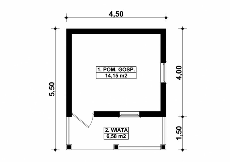 Projekt budynku gospodarczego, parterowego, niepodpiwniczonego. Do projektu dołączone jest zestawienie: stali, więźby dachowej oraz stolarki drzwiowej i okiennej, jak równieżbezpłatna zgoda na dokonanie zmian.