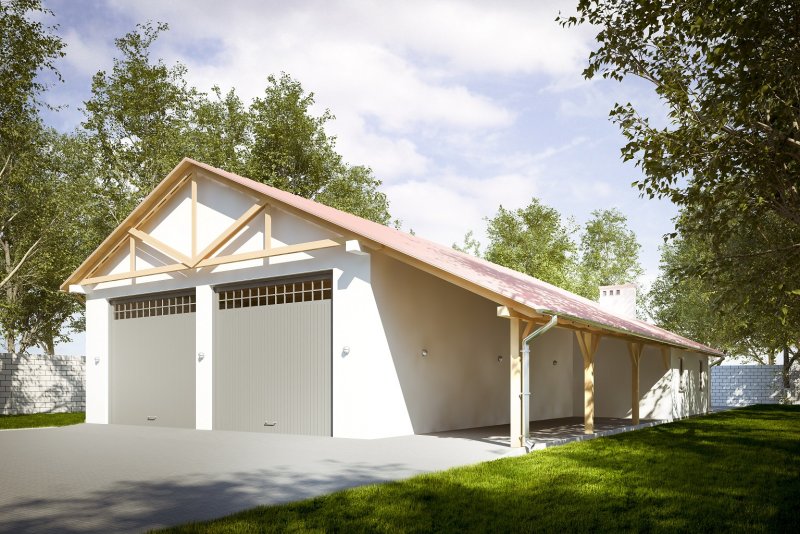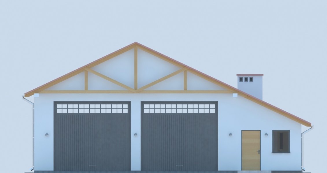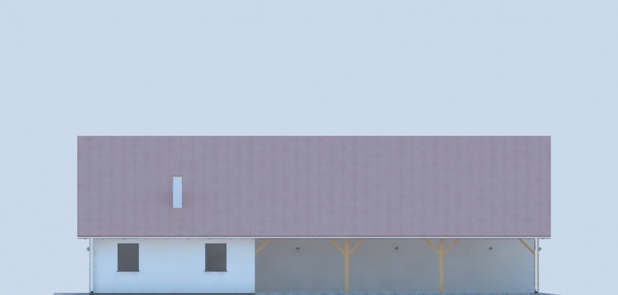 Projekt budynku parterowego, niepodpiwniczonego z trzema pomieszczeniami gospodarczymi i wiatą. Do projektu dołączone jest zestawienie: stali, więźby dachowej oraz stolarki drzwiowej i okiennej, jak równieżbezpłatna zgoda na dokonanie zmian.