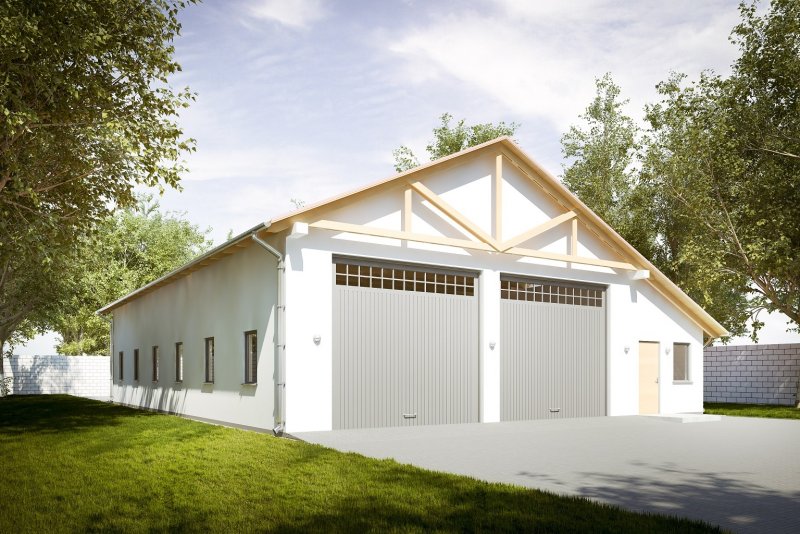 Budynek wykonany w technologii tradycyjnej. Ściany murowane z bloczków z betonu komórkowego grubości 24cm. Bramy o wymiarach 4,00x3,60m. Komin z cegły ceramicznej pełnej. Więźba dachowa dwuspadowa, drewniana, pokryta blachą trapezową.