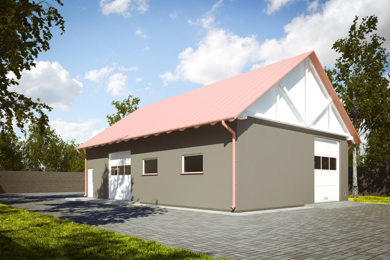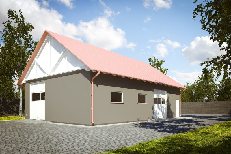 Budynek wykonany w technologii tradycyjnej. Ściany murowane z bloczków z betonu komórkowego grubości 24cm. Bramy o wymiarach 3,00x3,00m i 3,00x3,50m. Komin z cegły ceramicznej pełnej. Więźba dachowa dwuspadowa, drewniana, pokryta blachą trapezową.