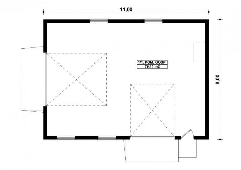 Projekt budynku gospodarczego, parterowego, częściowo podpiwniczonego. Do projektu dołączone jest zestawienie: stali, więźby dachowej oraz stolarki drzwiowej i okiennej, jak również bezpłatna zgoda na dokonanie zmian.