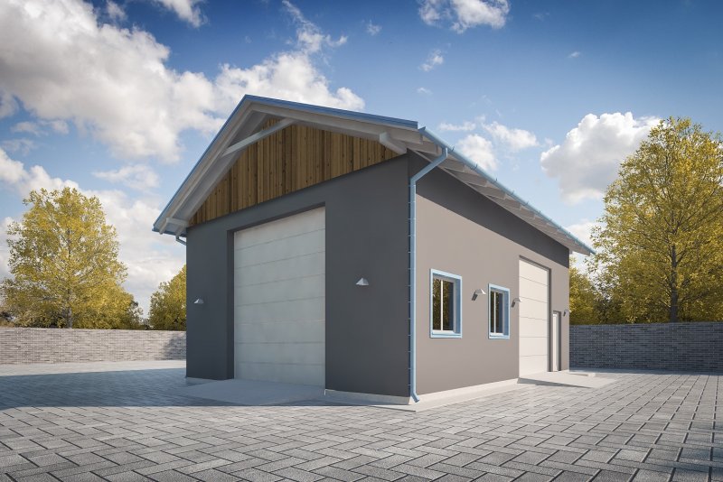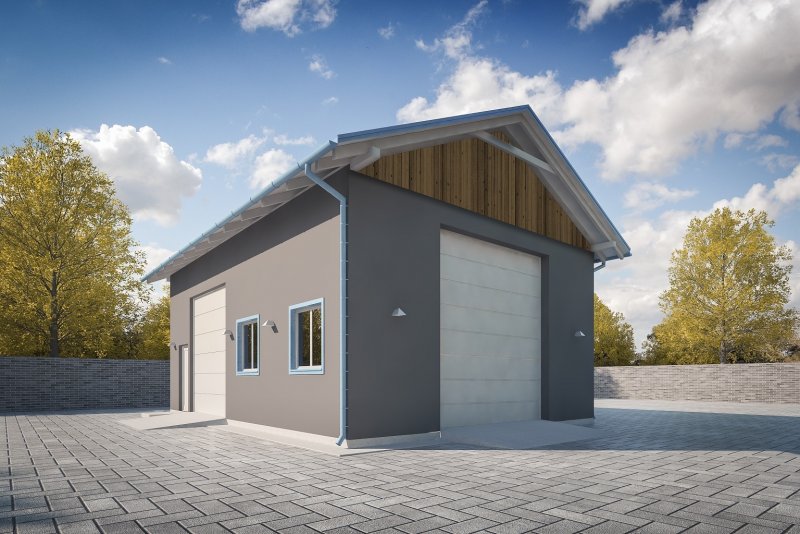 Budynek wykonany w technologii tradycyjnej. Ściany murowane z bloczków z betonu komórkowego grubości 24cm. Bramy o wymiarach 3,60x4,00m i 3,00x3,50m. Więźba dachowa dwuspadowa, drewniana, pokryta blachodachówką.
