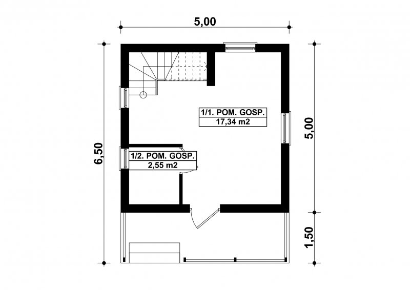 Projekt budynku parterowego, niepodpiwniczonego z dwoma pomieszczeniami gospodarczymi i strychem. Do projektu dołączone jest zestawienie: stali, więźby dachowej oraz stolarki drzwiowej i okiennej, jak równieżbezpłatna zgoda na dokonanie zmian.
