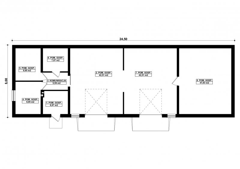 - Min. wymiary działki 24.50x8.00 m