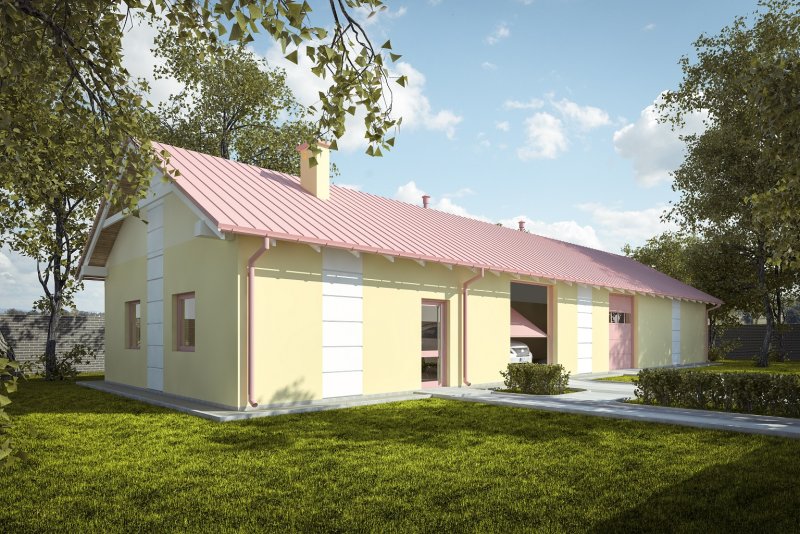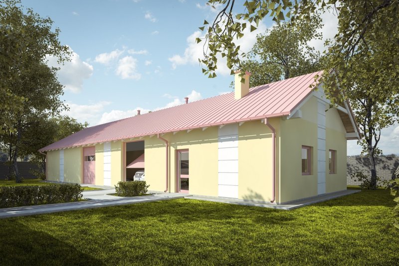Projekt budynku parterowego, niepodpiwniczonego z siedmioma pomieszczeniami gospodarczymi. Do projektu dołączone jest zestawienie: stali, więźby dachowej oraz stolarki drzwiowej i okiennej, jak również bezpłatna zgoda na dokonanie zmian.